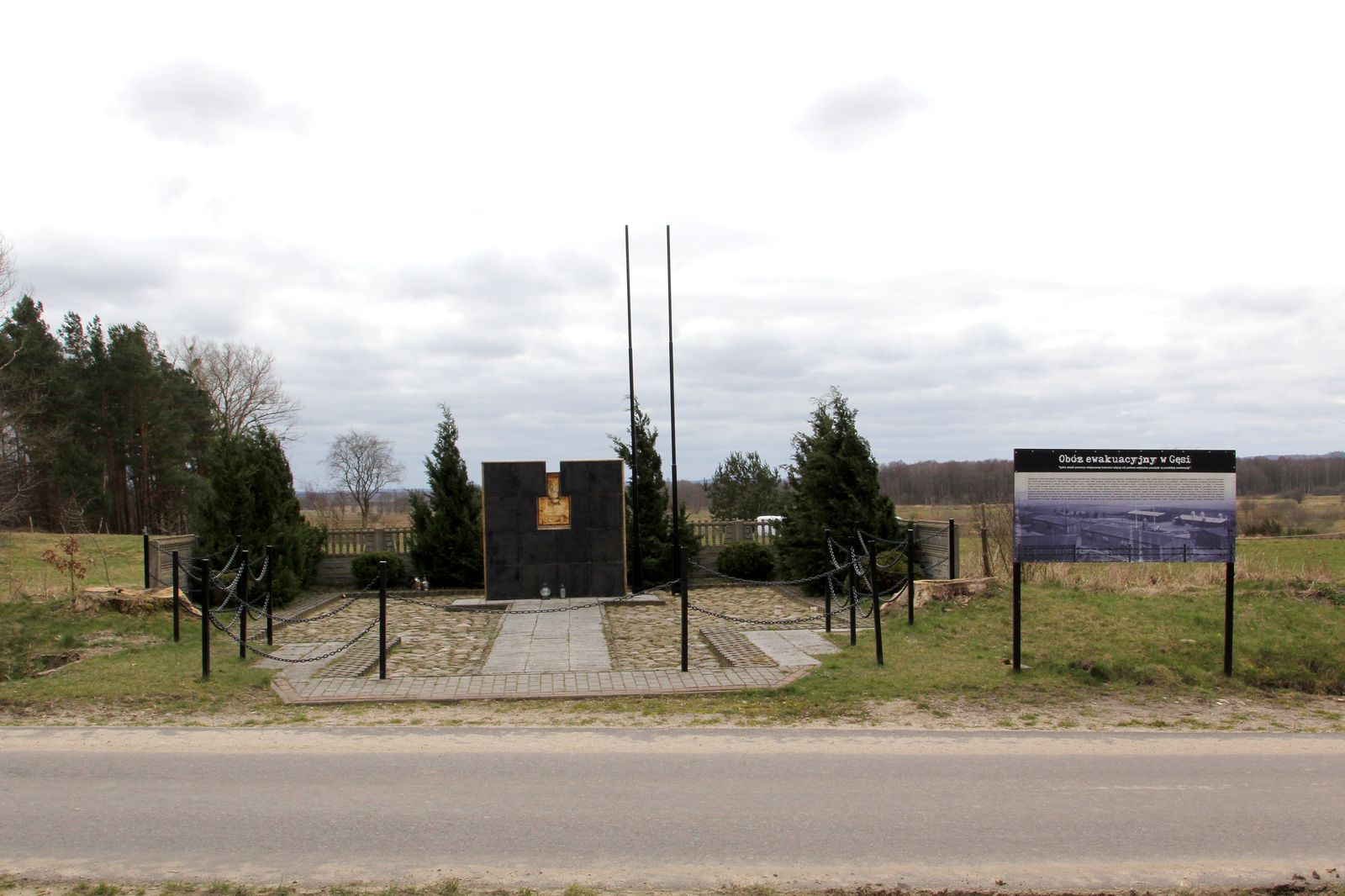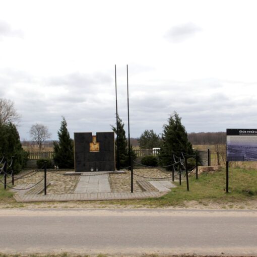 Upamiętnienie przy kościele pw. Najświętszego Serca Pana Jezusa przy ul. Długiej 18. Na pomniku znajdowała się tablica z informacją o przejściu przez miejscowość więźniów obozu Stutthof w pierwszych dniach lutego 1945 roku.